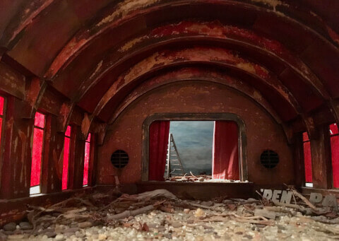 Carton, colle, peinture acrylique, sable 51cm x 34cm x 39cm